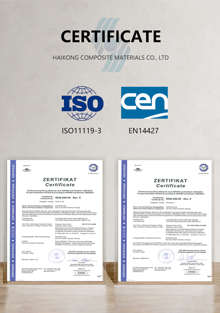 - Composite material cylinders are made from recyclable materials with good environmental performance, reducing waste generation. For example, composite material cylinders are recyclable, and their use simplifies regular inspection processes. The lightweight design also reduces transportation and installation costs, further reducing environmental impact.
